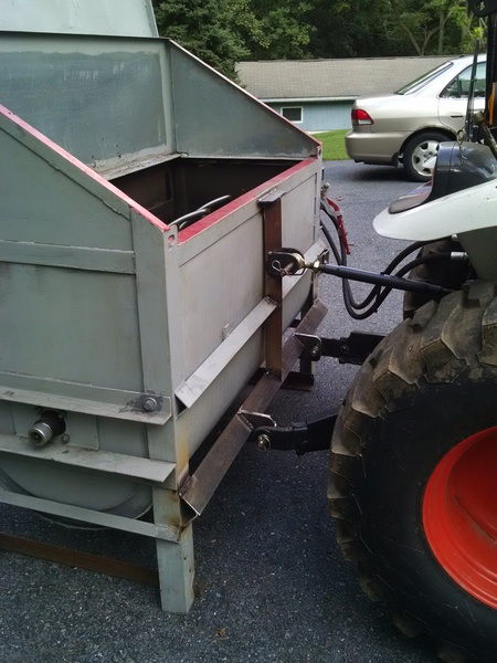 This unit was customized for a local farm designed to work with their tractor. The three point attachment allows easy transport to where the mix is needed and the tractors hydraulic system powers a 7HP hydraulic motor.