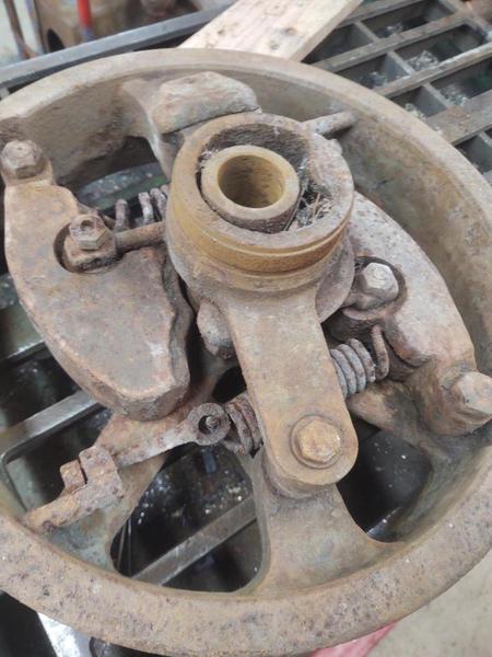 I purchased this steam engine and a Stover hit and miss at a local online auction, bought them sight unseen. I didn't know what to expect when I went to pick them up so I prepared myself for the worst possible condition, siezed, cracked, beyond repair, parts missing, you just never know. I'm familiar with the Stover so I was pleased to see it was intact except for the magneto and I knew that was missing from the auctioneers pictures. Its siezed but I'm not too concerned with that. The Payne steam engine was my real treasure. I started pulling things apart to take inventory and I was surprised to see the engine was intact, some minor parts missing and a broken timing cam follower were the main concerns. The engine was not siezed and was in otherwise good shape. I suppose it was pulled from a pump or sawmill and stored in a barn for the last 50 years. I started with a progression of pictures first dismantleing then re assembling. My intent is not to refurbish the engine but to clean it, tichen it up and maybe get it to work under compressed air.