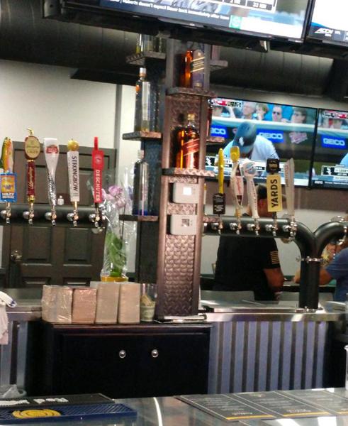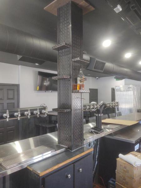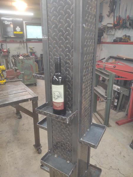 Covered up this wood column with this diamond plate. Added a few shelves for good measure